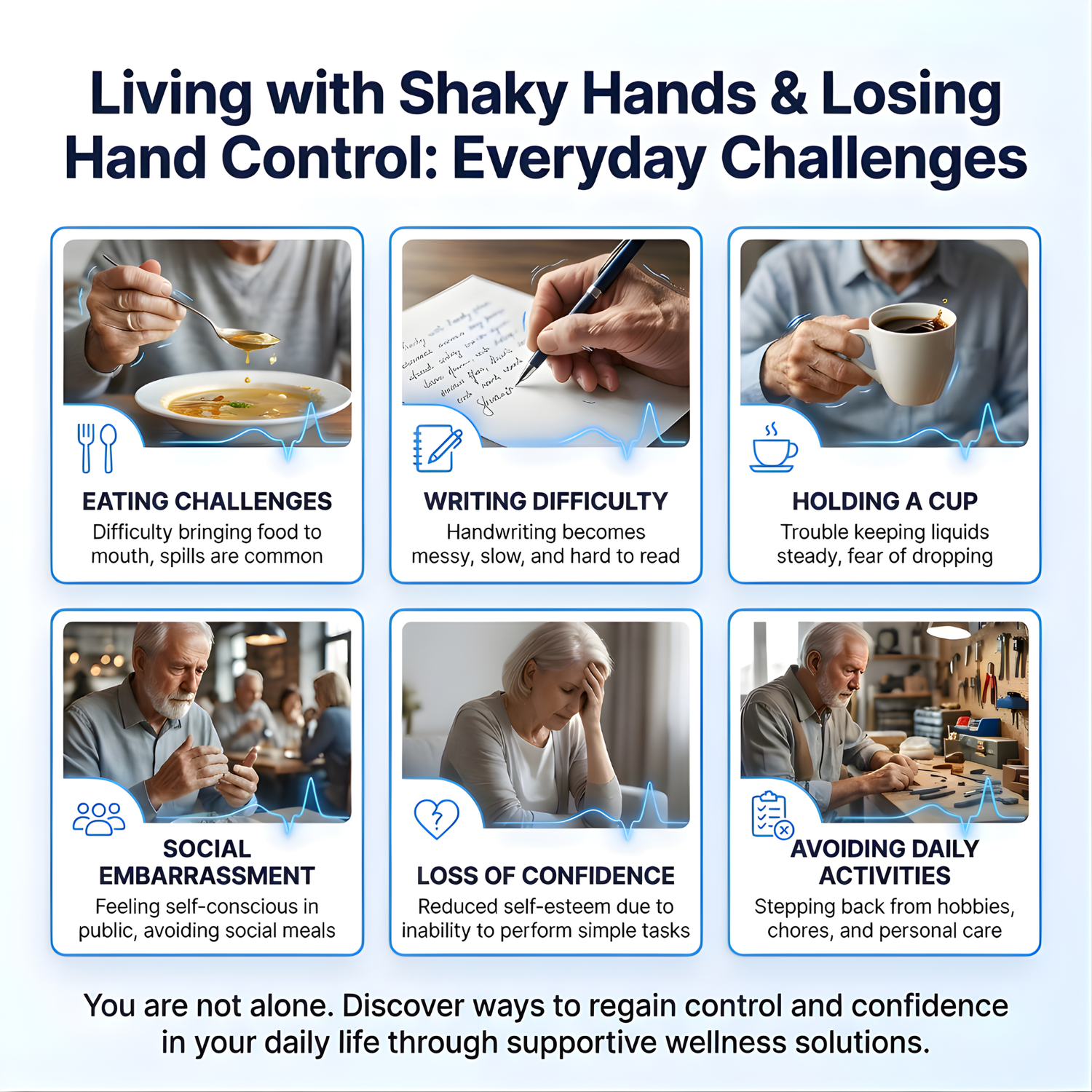 This approach aligns well with how the body naturally maintains motor control and balance, making it a thoughtful option for individuals seeking drug-free, daily support for steadier hand function.”