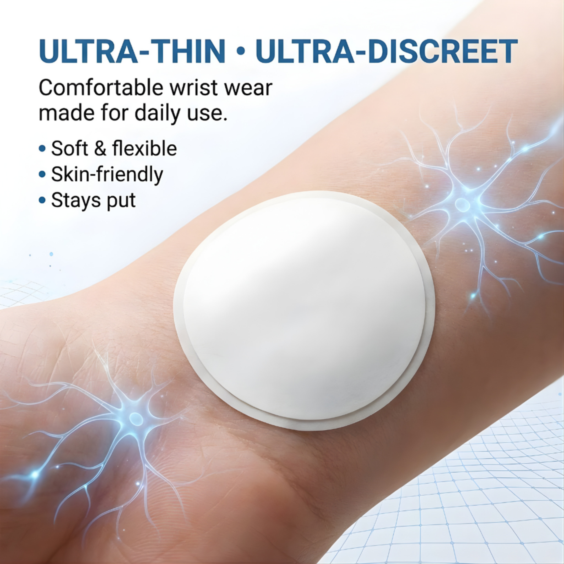 What stands out to me about this patch is its gentle, non-invasive design. Instead of stimulating the nervous system or introducing medication, it is designed to interact passively with surface-level bioelectrical activity, helping reduce excess signal noise and support calmer neuromuscular communication.