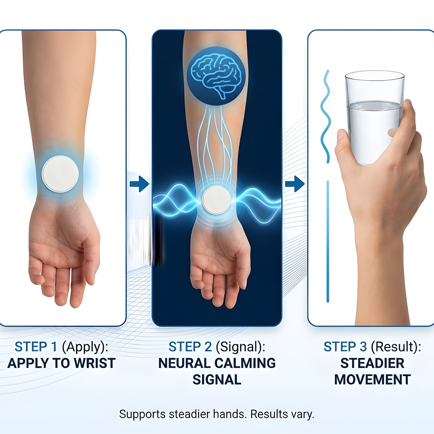 - Non-Invasive, Drug-Free Support The patch works externally without stimulation, penetration, or medication. It does not emit electricity or override the nervous system, making it suitable for daily use during activities that require hand control.